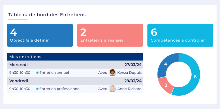 Un SIRH dédié qui centralise les formations, les objectifs des entretiens et les preuves. Le module “Entretiens & Compétences” de Nibelis vous offre une vision complète et durable du développement des compétences.